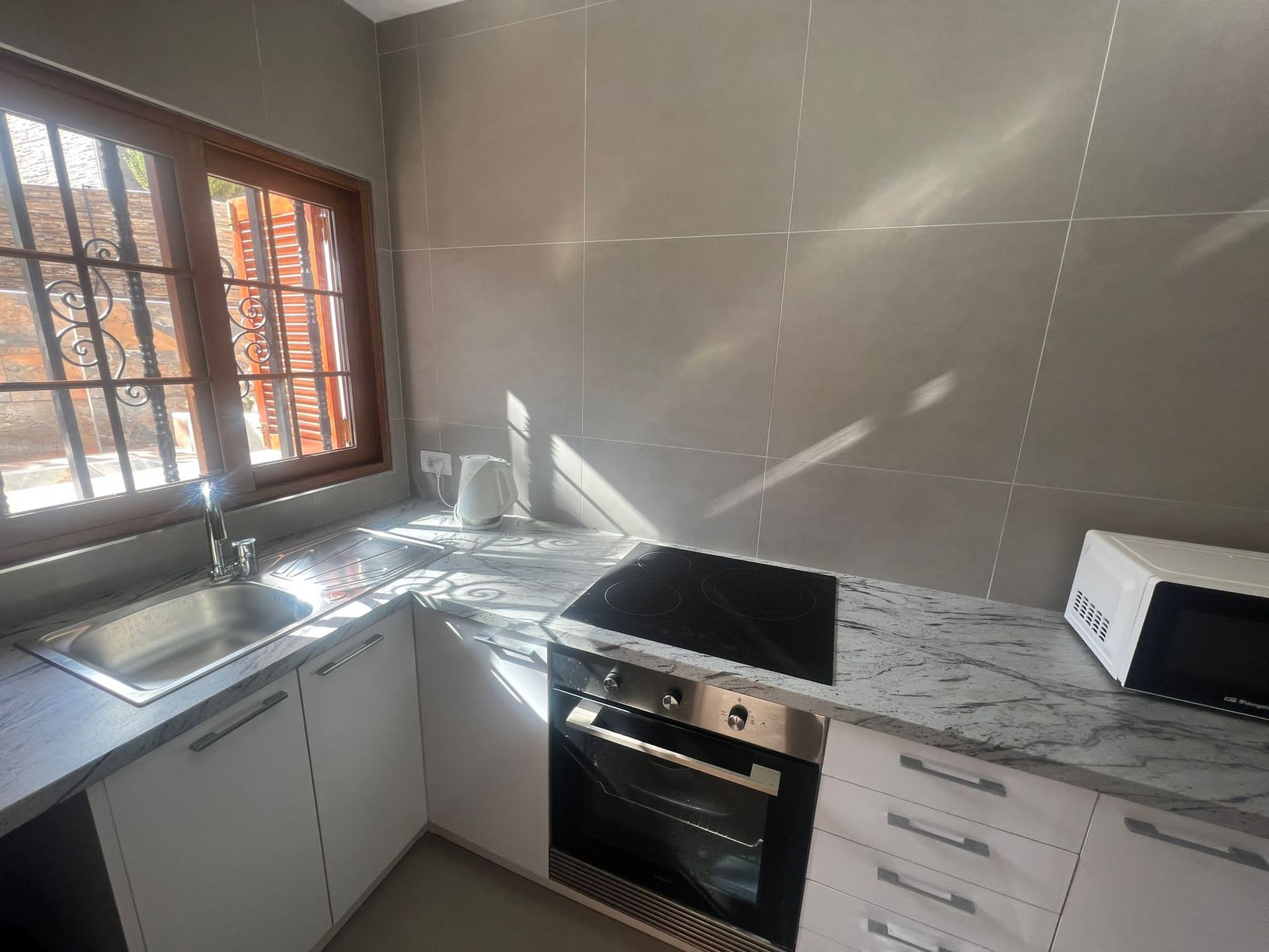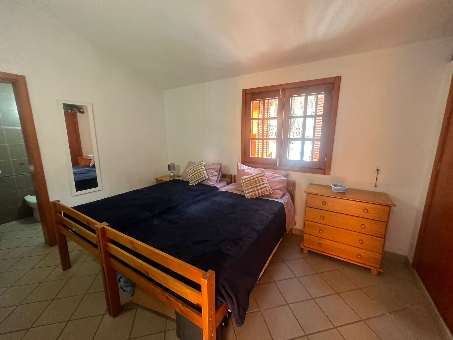 Walking through the door you enter a large courtyard, with enough space for sun loungers and table and chairs. Tiled to a high standard, with plants and a beautiful mosaic picture on the wall, giving it a nice Spanish feel. A perfect space to relax in the evening with a cool drink, or a nice private place to sunbathe.